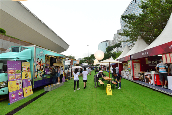 除了場內有電競比賽外,場外亦設有Festival Zone嘉年華,有不少電競相關展館,包括有多元化VR游戲專區、電競體驗區等,亦有6架美食車及小食攤位。升讀中六學生羅小姐與朋友到場,她表示自己有玩《英雄聯盟》,但因不夠錢購買門票入場內只好到嘉年華逛逛。她覺得攤位也算多,10元的入場費可接受。