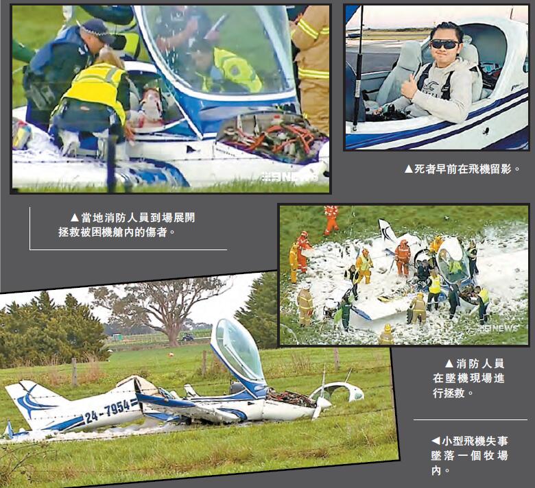 事發在澳洲墨爾本東南部、離墨爾本市中心約47公里的北克萊德。前日當地時間上午10時40分,事主跟隨一名年約30歲教練駕駛一架Bristell FG小型飛機進行訓練,期間飛機失事墜落一個牧場內,當地警方接報後馬上派員到場拯救。現場消息稱,教練先被救出送院,事主則被困機內,救援人員花逾1小時才成功將他救出,其面部和胸部均受傷,身上有多處骨折,送院搶救後情況危殆,最終在昨午傷重不治。