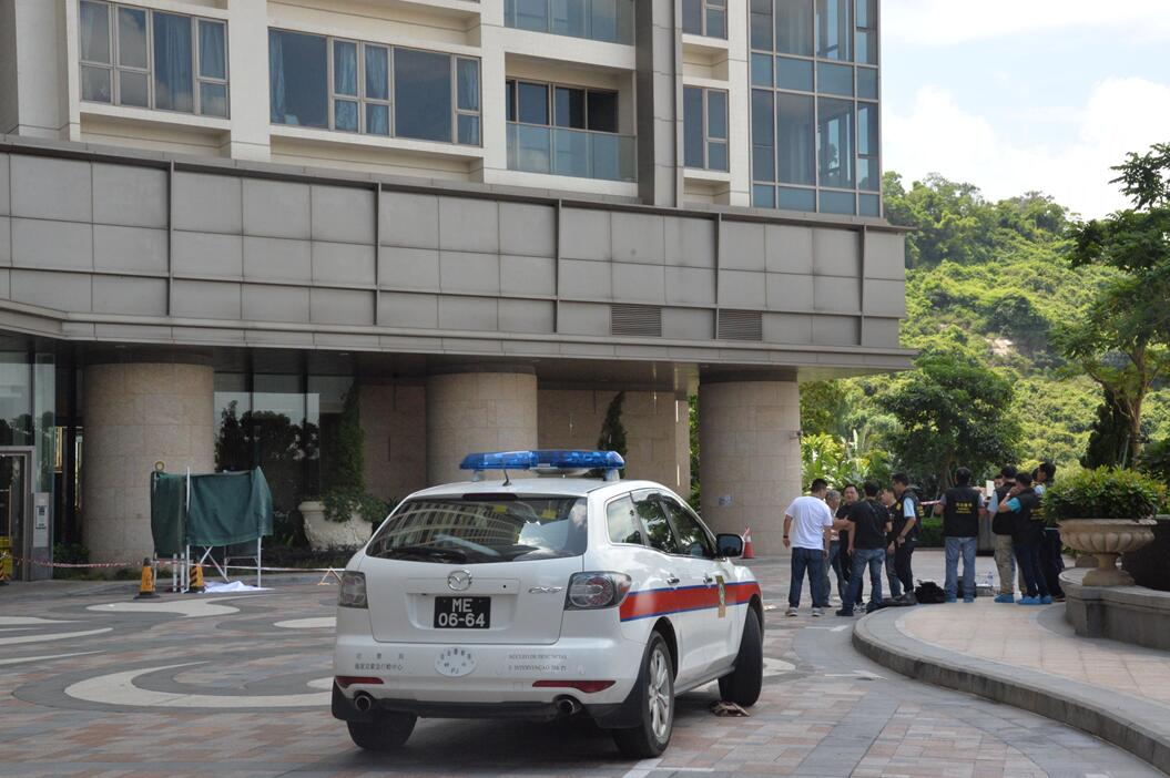 澳門路環石排灣金峰南岸第8座發生墮樓案,一名香港男子和一名女童墮樓,其中男子證實當場死亡,女童在送院搶救無效後不治,司警在現場調查。