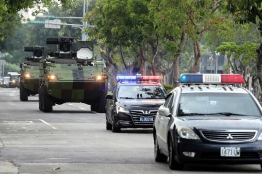 圖為蔡英文車隊在台裝甲車保護下,駛向台防務部門。(圖片來源:台灣《聯合報》)