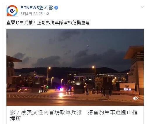 果不其然,在昨晚的報道畫面中,又出現了“蔡英文車隊演練危機處理”等字眼。