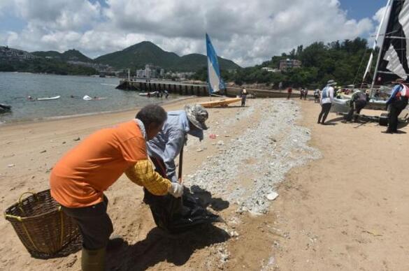 【橙訊】海事處、康文署、食環署及漁護署公佈,自星期六接報至昨中午12時,在海上及泳灘合共收集了超過50公噸的棕櫚硬脂。