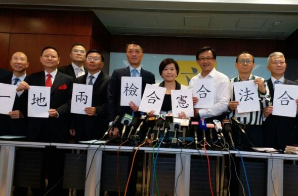 【橙訊】早前泛民成立「一地兩檢關注組」批高鐵一地兩檢方案是「割地賣港」,建制派則成立「一地兩檢關注聯席」表明支持有關方案。有法律背景的立法會議員梁美芬、何君堯、吳永嘉,以及張國鈞和周浩鼎,今日聯同多位法律界人士成立「法律界關注一地兩檢聯席」,強調一地兩檢安排符合《基本法》及「一國兩制」,又批評割地說法是沒有法律依據和誤導公眾。
