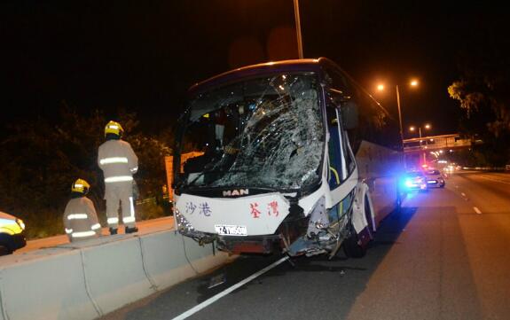 現場發現旅巴煞車胎痕,石壆發現血迹。57歲旅遊巴司機頭部嚴重受傷,當場證實死亡。旅遊巴內14男1女乘客受傷,年齡介乎17歲至67歲,清醒送博愛醫院、北區醫院及那打素醫院治理。警方正循司機的精神狀態、有否扣上安全帶及安全帶的性能等方向調查。
