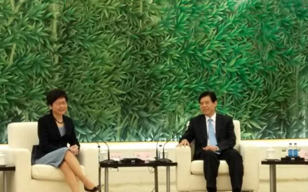 林鄭月娥(左)晤商務部長鍾山(大公网)