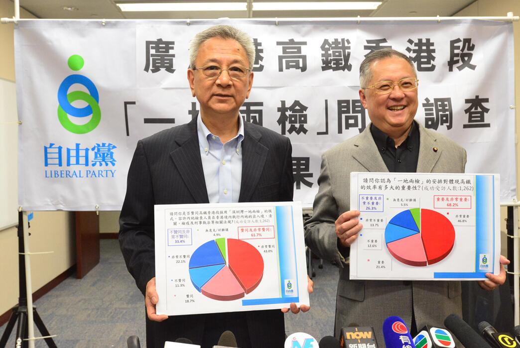 自由黨就高鐵「一地兩檢」方案於本月2日至7日以問卷訪問了約1262人。調查顯示,有61.7%受訪者贊同高鐵香港段采用「深圳灣一地兩檢」的模式,容許內地檢查人員在香港境內執行內地的出入境、清關、檢疫及刑事執法等相關法規;不表贊同的有約三成三人。另外,有68.2%受訪者認為「一地兩檢」的安排對體現高鐵的效率至為重要。