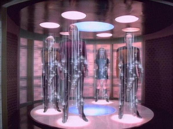 科幻劇《星際迷航》中瞬間傳送人類畫面。