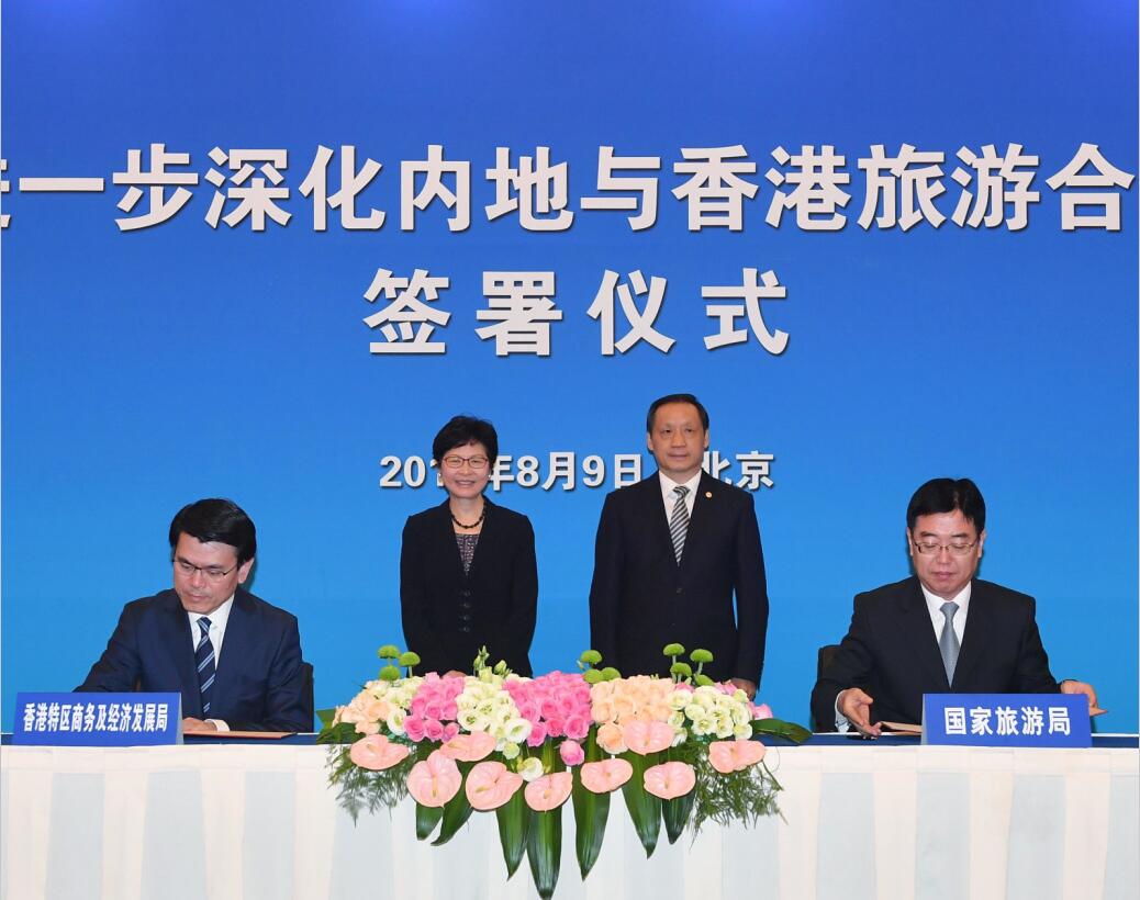 林鄭、財政司司長陳茂波及邱騰華隨后與國家旅游局局長李金早會面,并出席他所設的午宴,就香港與內地最新的旅游市場情況交流意見。在林鄭及李金早見證下,邱騰華代表特區政府與國家旅游局副局長杜江簽署了「關於進一步深化內地與香港旅游合作協議」(見另稿)。