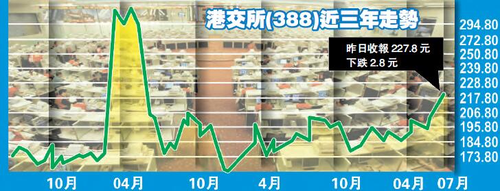 另外,港交所上半年的資本開支為3.06億元,較去年同期的2.66 億元,多出4000萬元,主要涉及在內地設立大宗商品平臺、裝修辦公室、提升交易結算系統、以及優化「滬港通」及「深港通」的技術設施。