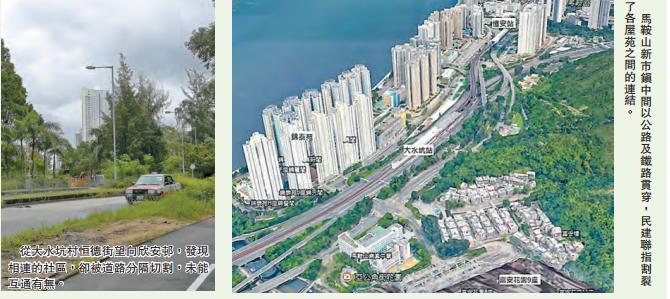 大水坑區是馬鞍山的門戶,分立於兩旁的錦泰苑和富安花園中間被架空鐵路橋梁、道路相隔,兩屋苑之間靠大水坑站的隧道相連,地面的行人路和單車徑則被交通燈分割。區內欣安恏則更加極端,雖說與恒安恏為鄰,但為了遷就道路交通安排,要繞一個大圈才可以去到恒安恏,到海濱公園更要走過2條行人隧道及中間的寵物公園,才能夠到達。南向由欣安恏到富安花園也非常不便。