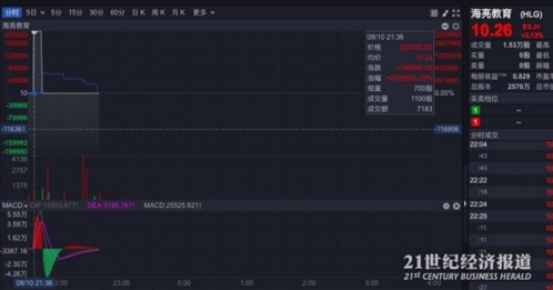 北京时间8月10日美股交易时间,中国概念股海量教育盘中惊现乌龙指,股价一度逼近200000美元每股,涨幅近两万倍。随后海量教育股价因在09:38:43宣布因涨跌幅波动异常暂时停牌,并与09:43:43恢复交易。