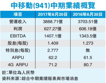 上半年4G客戶ARPU(每月每戶平均收入)由去年同期的80.7元下跌至71.2元;整體移動ARPU則升至62.2元,去年同期為61.5元。