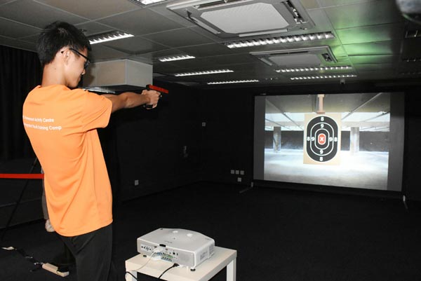 少訊中心提供雷射槍練靶場,讓青少年一嘗開槍感覺。記者馮瀚文攝