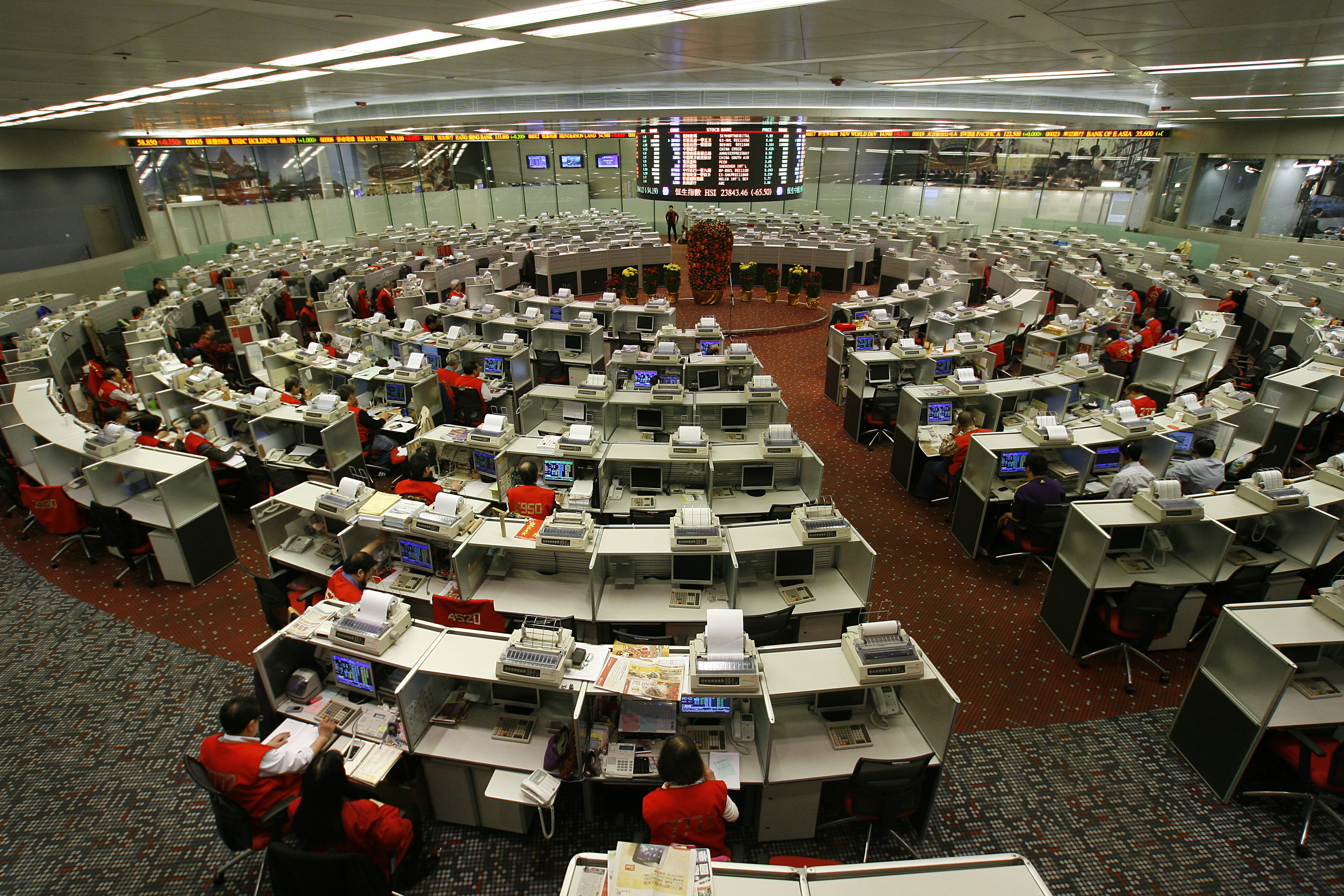 資料顯示,交易大堂啟用初期,面積達4.5萬平方尺,早年每日在交易大堂出沒的「紅衫仔」數目,更多達近1000人。及至九十年代自動對盤(AMS)系統出現後,出市代表的重要性已大不如前。港交所於2005年至2006年期間,大減交易大堂面積三分之二。證券交易櫃齘數目,已由2006年的294個,降至現時的62個。目前,日本東京及新加坡交易所,均已淘汰交易大堂。