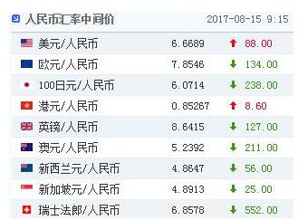 8月15日,人民幣(6.6708, 0.0014, 0.02%)兌美元中間價報6.6689,較上日中間價6.6601貶值88點,結束了此前的五連漲。