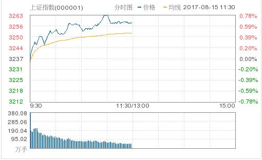 截至午間收盤,滬指漲0.64%報3258.16點,深成指漲0.21%報10542.29點。創業板指跌0.12%。