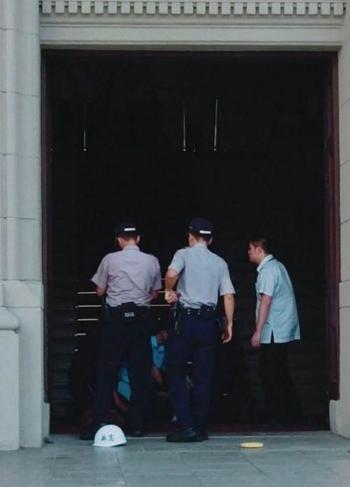 “总统府”位于博爱路和长沙街口的出入门,上午10时多遭到一名民众持利器闯入,有一民众持利器砍伤戍卫4号门的宪兵脖子,满地都是血迹,宪兵第一时间已送台大医院诊治,并无生命危险。