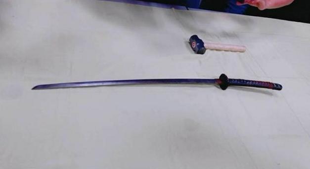 台警方中午拿出这把军史馆藏的武士刀,武士刀刀柄及刀刃间刻上“南京役杀一○七人”。《自由时报》报道称,是沾染有血腥的凶刀,“传是我国抗战史上日军所持用武士刀”,曾斩杀高达107人,因此这把武士刀亦可称为“日本军人屠刀”。