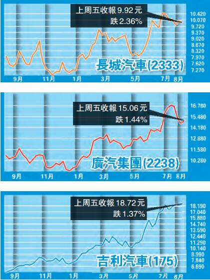 第二季乘用車銷售有所改善,當中,受惠於新車推出以及平均出廠價格上升,吉利汽車表現最佳。吉利公布半年賺高達43.44億元(人民幣,下同),按年大升1.28倍。期內,收入394.23億元,按年增加1.18倍。
