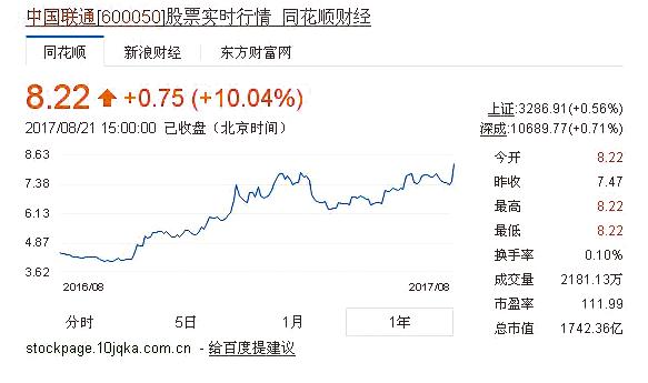 【香港商報网訊】記者鄺偉軒報道:混改方案獲中證監特批放行後,中國聯通(600050.SH、00762.HK)昨日復牌急升,A股開盤即宣告漲停,報8.22元人民幣。至於聯通H股開市亦大幅抽高,最高見13.24元港元,飆10.88%;收市仍升3.52%,收報12.36元港元。