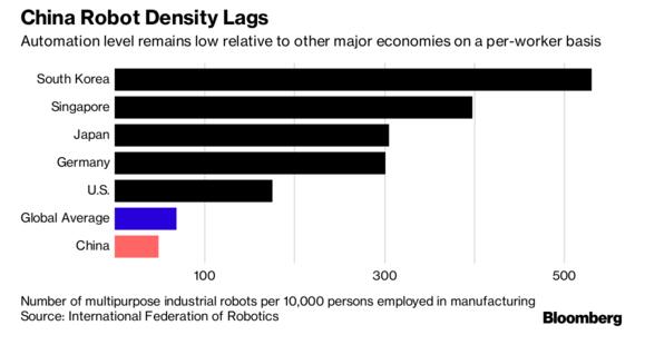 Bloomberg Intelligence的經濟學家湯姆·奧立克(Tom Orlik)和菲爾丁·陳(Fielding Chen)認為,“通過促進供給和抑制需求,自動化加劇了中國依賴于出口驅動型增長的風險,對更加平衡的國內經濟和全球經濟造成威脅。”
