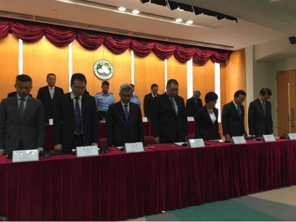 澳门行政長官崔世安與官員起立默哀一分鐘