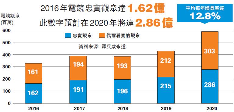 另外,由於網上直播平台大行其道,令觀眾數目亦以倍數增長。2015年全球電競觀眾數目只有1.2億人,但短短一年已增長至1.6億人,增長超過30%。觀眾數目的增長,除了令門票收益增加,間接令電競戰隊及賽事管理這兩大板塊受益外,更直接令直播平台收入增加。