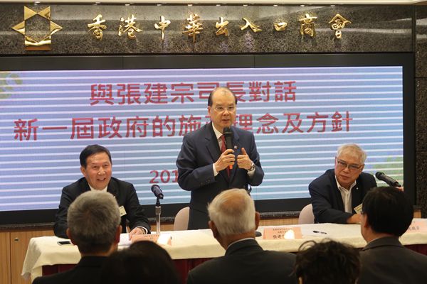 【香港商報网訊】記者余江強報道:香港中華出入口商會2017年度周年會員大會日前假中出會會所舉行,特邀政務司司長張建宗出席座談會,就政府的施政理念和方針發表演說,並回答該會會員的問題。張建宗表示,經過多年的磋商,年底前香港將和東南亞公約十個國家簽署自由貿易協議,是出入口的大喜訊,再加上粵港澳大灣區、「一帶一路」規劃,未來出入口貿易商機不絕。