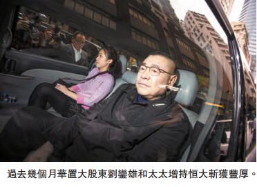 【香港商報网訊】實習記者李卓成報道:華人置地(127)4月至今累斥104億購入恒大(3333)股份,「大劉」劉鑾雄太太陳凱韻(甘比)連同集團的持股量已佔恒大發行股本約6.1%。以昨日收市價計算,華置連同甘比持有的恒大股份市值達204.26億元,帳面回報已達100億。