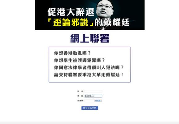 何君堯在網上發起聯署要求港大辭退戴耀廷。圖:互聯網