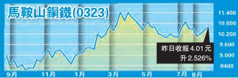 個股方面,馬鋼(323)中期盈利增長2.6倍至16.4億元人民幣,期內收入上升67.5%至351億元人民幣,其中生鐵、粗鋼、鋼材產量分別增長10.5%、11.7%及11.3%。中央繼續貫徹落實去產能政策,有利鋼價持續高企,7月底中國鋼材價格指數按月上升5.4%,按年升幅更達47.7%。故此,公司亦表示目前生產經營形勢較好,預計今年盈利將大幅度提高。業績後股價有獲利回吐,可趁低吸納。建議於3.7元吸納,上望4.2元,跌穿3.4元止蝕。