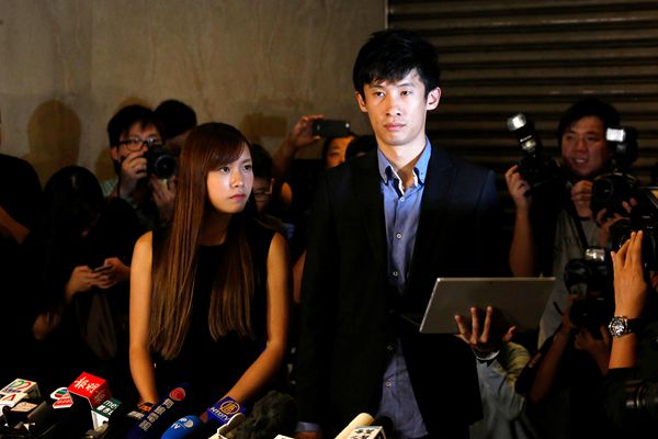 梁頌恆(右)及游蕙禎(左)DQ案上訴被駁回,上訴庭昨日頒判詞。圖為兩人早前被裁定失去立法會議員資格時會見傳媒的情況。