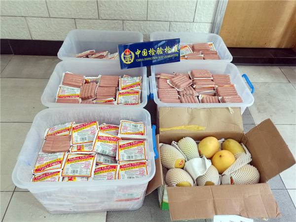 据了解,工作人员在对入境车辆查验时,发现一车辆后座有一箱疑似装有水果的纸箱,遂上前查询,发现里面装有芒果。在对整车继续查验时发现在座位底部及后备箱底部有大量箱装鸡肉肠。据旅客自述,该批物品为商用。根据《中华人民共和国禁止携带、邮寄进境的动植物及其产品名录》规定,新鲜水果、肉类及其制品禁止携带进境,且该旅客未办理相关检疫审批手续,工作人员依法对该批物品作截留销毁处理,同时对该名旅客予以立案调查。