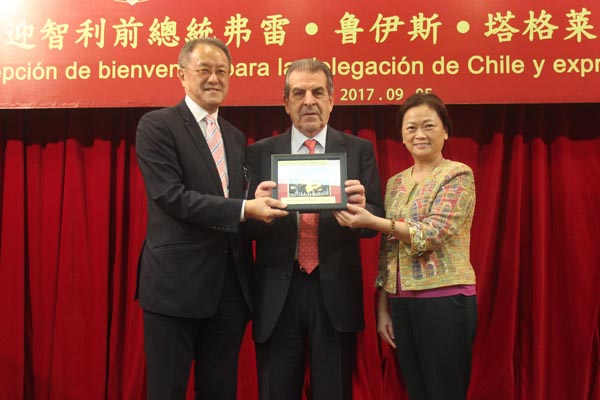 【香港商報網訊】記者曾美玲報道:2017年中國「智利周」於8月29日至9月8日分別在北京、成都、廣州、深圳、香港和武漢六地舉行。由智利前總統弗雷·魯伊斯·塔格萊率領的智利代表團一行昨日到訪香港潮州商會,受到該會署理會長林宣亮、副會長高佩璇及一眾會董的熱情接待。