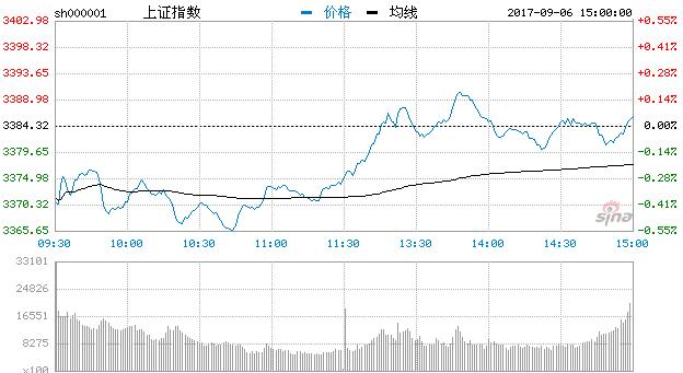 新浪財經訊 9月6日消息,今日兩市雙雙低開,滬指早盤低開低走,表現疲弱。但隨著盤中資源股、鋰電池等熱點輪番起漲,滬指回升翻紅。創業板指數表現強勢,全天維持震蕩走高態勢,臨近尾盤,在半導體、無人駕駛等科技類題材板塊帶動下,突破1900點整數關口並維持高位震蕩。截止收盤,滬指報3385.39,漲0.03%;深成指報11024.59,漲0.34%;創指報1902.86,漲0.94%。