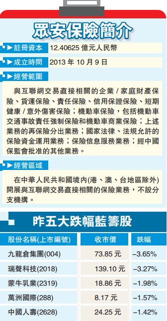消息稱,眾安保險擬今日在港進行IPO聆訊,是次集資額約為10億至15億美元。若順利通過,最快下周一(11日)進行預路演,本月18日正式推介。公司的IPO保薦人陣容鼎盛,包括摩根大通、瑞信、瑞銀及招銀國際。