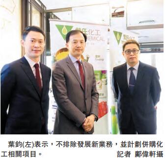 【香港商報网訊】記者鄺偉軒報道:以生產溶劑、涂料、油墨及潤滑油為主的葉氏化工(408),其企業發展總裁葉鈞表示,不排除發展新業務,并計劃併購化工相關項目,如溶劑上游業務。他強調現時提出有意對外併購,非擔心原有業務見頂。