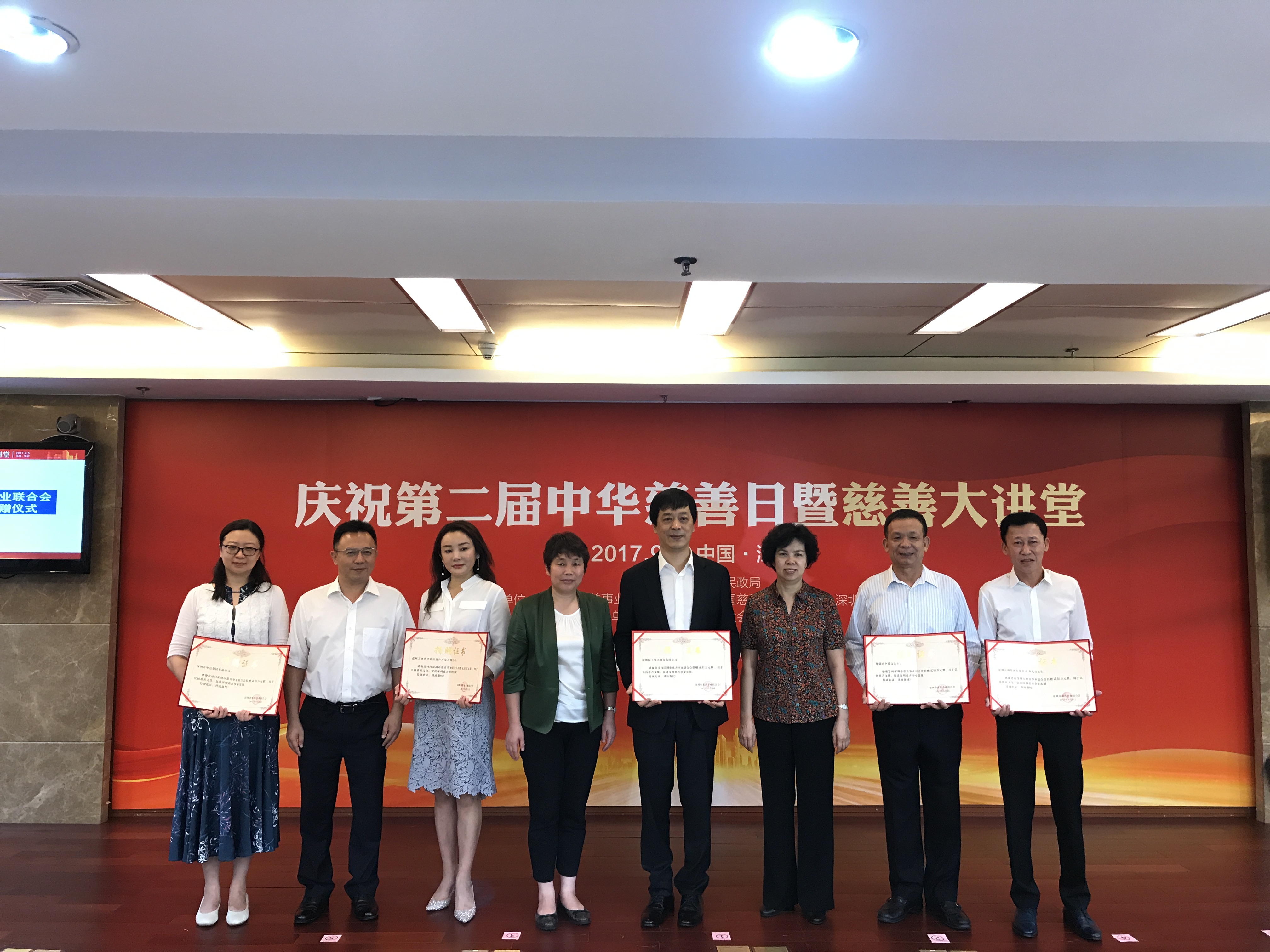 2017年9月5日,時值中國第二個中華慈善日與深圳市慈善事業聯合會成立一周年,由深圳市民政局主辦,深圳市慈善事業聯合會與深圳市中國慈展會發展中心、深圳市慈善會共同承辦,深圳經濟特區社會工作學院協辦的“慶祝第二屆‘中華慈善日’暨慈善大講堂活動”在深圳市中民時代廣場舉行。深圳市人大常委會常務副主任羅莉,深圳市人民政府副秘書長張紀青,深圳市民政局局長廖遠飛,深圳市民政局副局長陳文清,深圳市慈善會會長姚欣耀,深慈聯會長、深圳海王集團股份有限公司董事長張思民,名譽會長、信義集團董事局主席李賢義,名譽會長、深圳經濟特區社會工作學院院長章必功,名譽會長兼執行長李羅力等嘉賓出席了本次活動。本次活動由深慈聯副會長、海王集團黨委書記王驥主持,深慈聯會員、其他慈善組織代表近200人參加了本次活動。