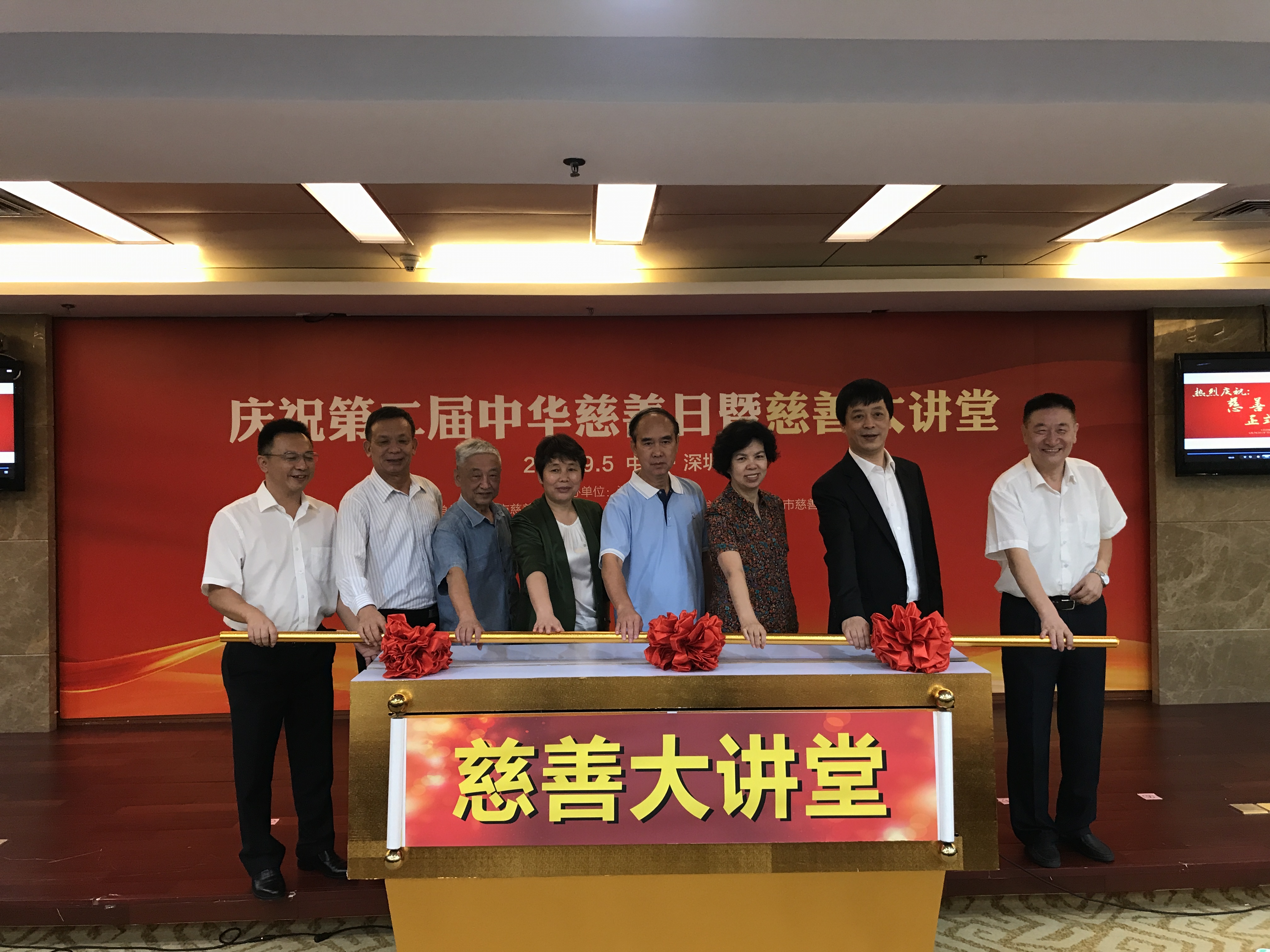 同時,值此中華慈善日之際,“慈善大講堂”系列活動正式啟動。“慈善大講堂”是在深圳市民政局指導下,由深圳市慈善事業聯合會主辦的大型全民性慈善知識講座,旨在傳播慈善文化、倡導全民慈善、普及慈善知識、激發慈善創新。活動現場,羅莉常務副主任、張紀青副秘書長、廖遠飛局長、姚欣耀會長、張思民會長、李賢義主席、章必功院長、李羅力執行長擔任啟動嘉賓,共同推動啟動杆宣布了“慈善大講堂”系列活動正式啟動。