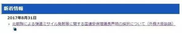 在日本驻韩国使馆网站首页上,最显眼的内容仍是联合国安理会8月29日就朝鲜发射中远程弹道导弹发表的主席声明。