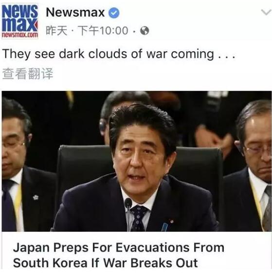 “战争的阴云正在逼近。”美国Newsmax网站如是评价道。文章还认为,日本政府打算撤侨的动向对朝鲜而言“是一个警示”。