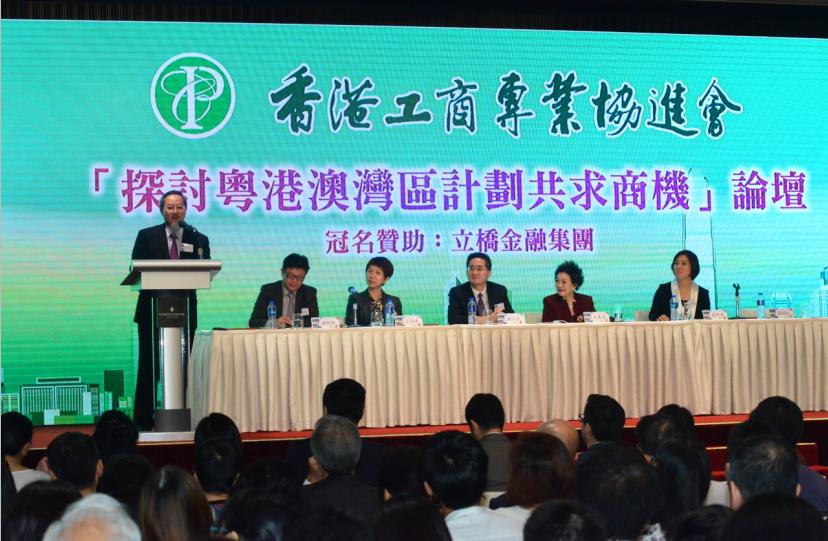 【香港商報网訊】記者莊海源報道:香港工商專業協進會昨舉辦「探討粵港澳大灣區計劃共求商機」論壇,邀得中聯辦社會工作部部長楊茂、中聯辦法律部部長王振民、商務及經濟發展局副局長陳百里擔任主禮嘉賓,深圳市前海深港現代服務業合作區管理局副局長王焱俠、港交所上市發行服務部高級副總裁鍾創新、澳門金融學會管理委員會顧問劉錦釗等任主講嘉賓。