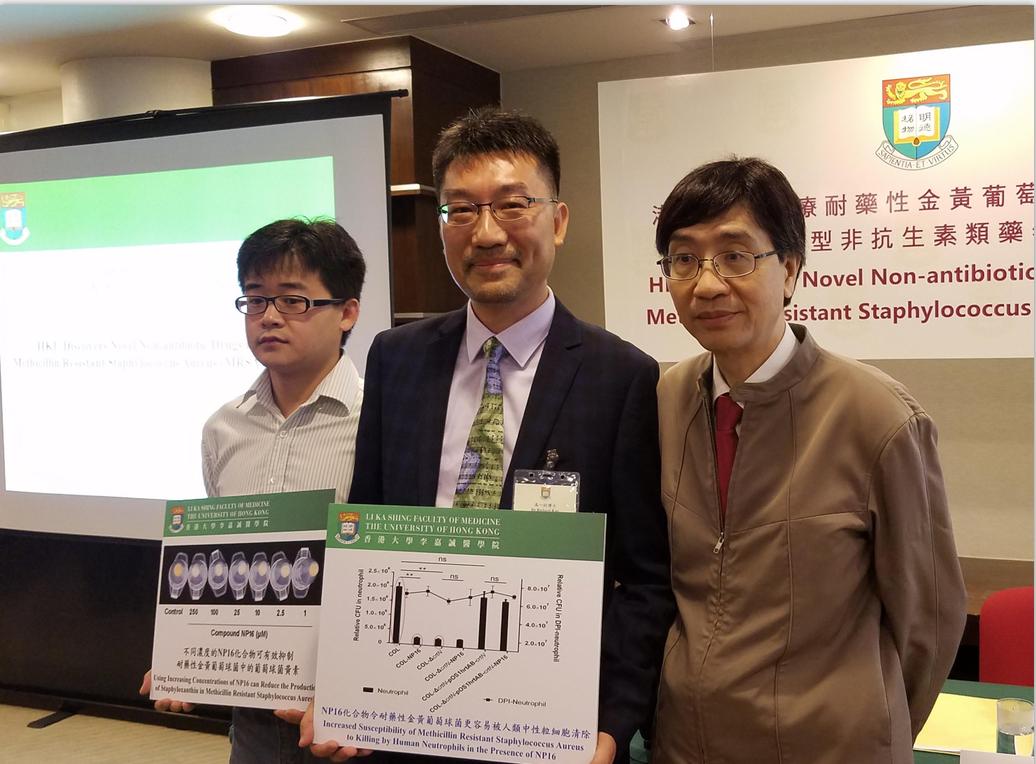 他說,NP16可削弱細菌在氧化應激情况下的存活能力,而金黃葡萄球菌經NP16處理后更容易被中性粒細胞清除,在小鼠感染細菌模式,細菌數目明顯降低10倍。他續指,相信致病因子脫水鯊烯脫氫濲可提供一種全新治療金黃葡萄球菌的標靶藥物,而NP16作為脫水鯊烯脫氫濲的有效抑制劑,有助免疫系統清除金葡萄球菌。