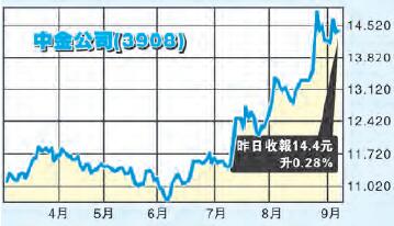 內地股市早前造好,上證企穩在3300點以上水平,中金近期持續向上突破,而年初至今的升幅可謂跑贏同業。從年初至今,中金累升近25%,而中信証券(6030)、國泰君安(2611)及華泰證券(HTSC)(6886)等僅有介乎3%至8%的升幅,而中國銀河(6881)、廣發證券(1776)等更是基本上無升過。