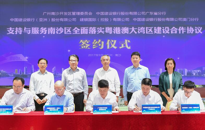建行廣東省分行行長劉軍告訴記者,“南沙區地處粵港澳幾何中心位置,是中央確立的粵港澳合作的重大平台,與南沙區開展粵港澳大灣區建設合作是建行的重要戰略選擇。建行三地四機構將發揮集團優勢,全力支持建設廣州南沙新區城市副中心,支持南沙區航運產業、國際貿易、現代金融等服務建設,打造廣州‘三中心一體系’核心功能區,運用自主創新高端跨境金融服務體系,構建‘一帶一路’城市結合點和重要樞紐。”