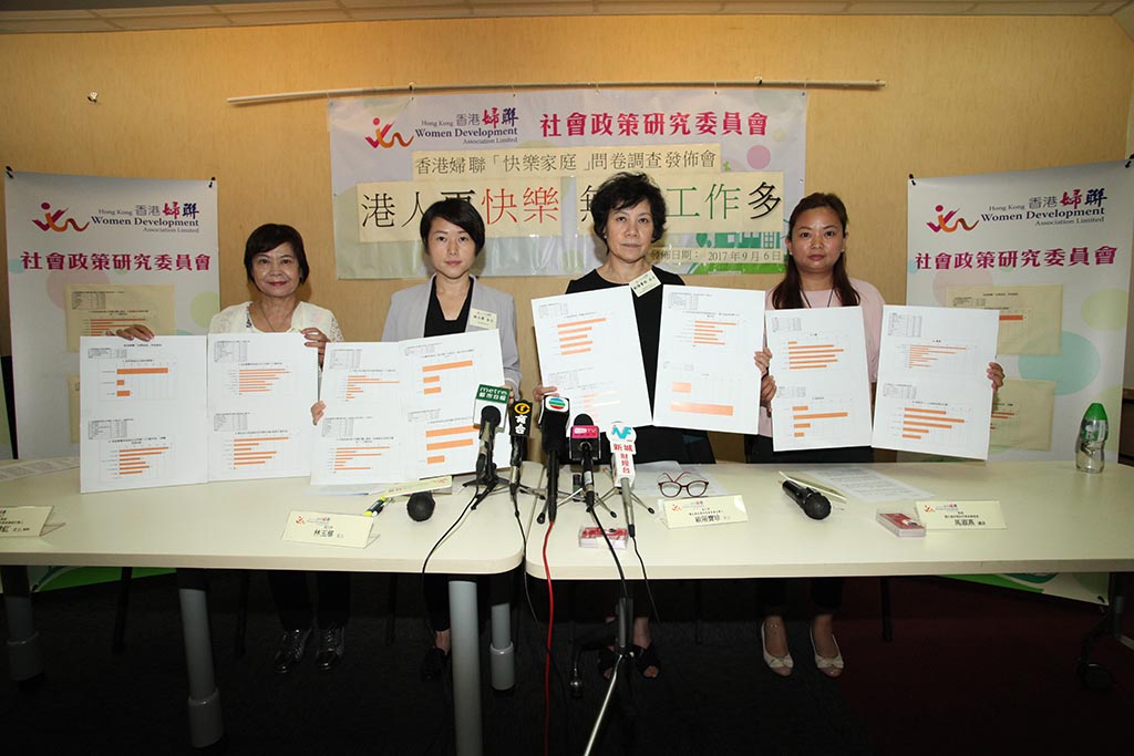 婦聯社會政策研究委員會由2014年開始已連續4年舉行「快樂家庭」問卷調查,今年該會在7至8月期間,以問卷調查的形式訪問了490名人士,包括113位男性、377位女性。