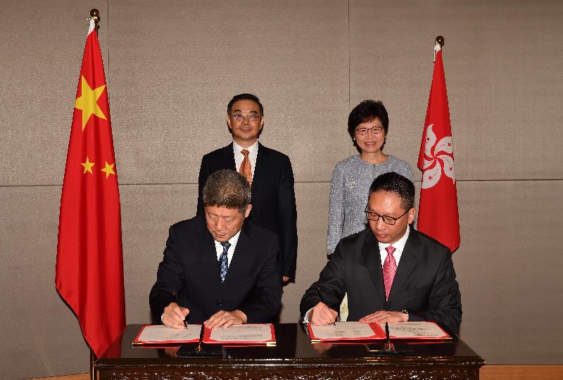 會後,林鄭月娥與周強共同見證律政司司長袁國強與最高人民法院副院長李少平簽署《關於加強最高人民法院與香港特別行政區政府律政司交流與合作紀要》。林鄭月娥相信雙方將進一步加強及優化兩地司法和法律界的交流及合作。