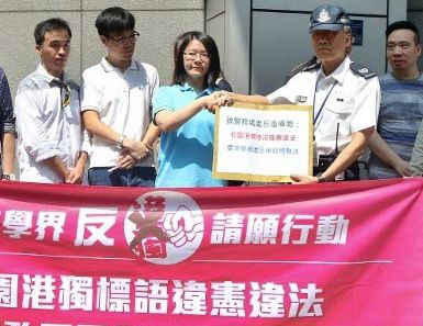 謝曉虹(左三)日前向警方遞信,促對校園「港獨」標語執法。
