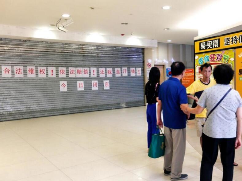 一名消费者站在门口无可奈何,有些人甚至还持有易买得的购物卡。