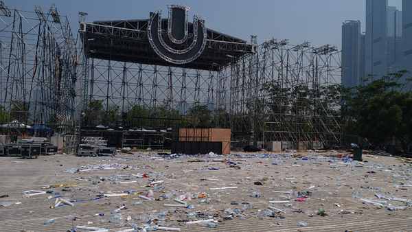 事隔一日,昨日現場所見,舞台仍未拆卸,場地內留下大量垃圾,包括有酒樽、膠樽及香烟盒等,多名清潔工人正忙於清理。據其中一名清潔女工人稱,前日下午天氣酷熱,場內迫滿人,在強勁音樂下,一邊跳舞一邊飲酒,期間目睹一名少女暈倒地上抽搐,她估計少女因天氣太熱致中暑。